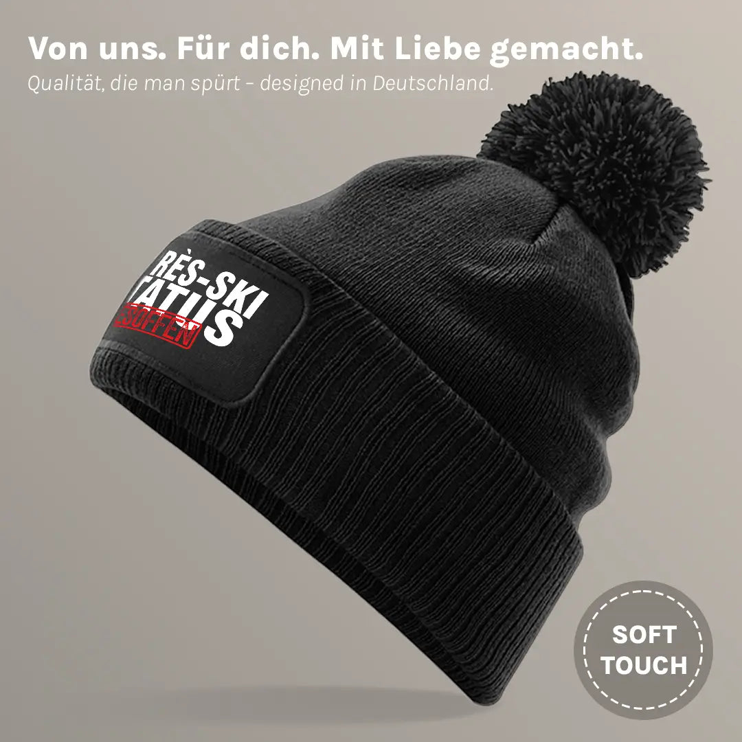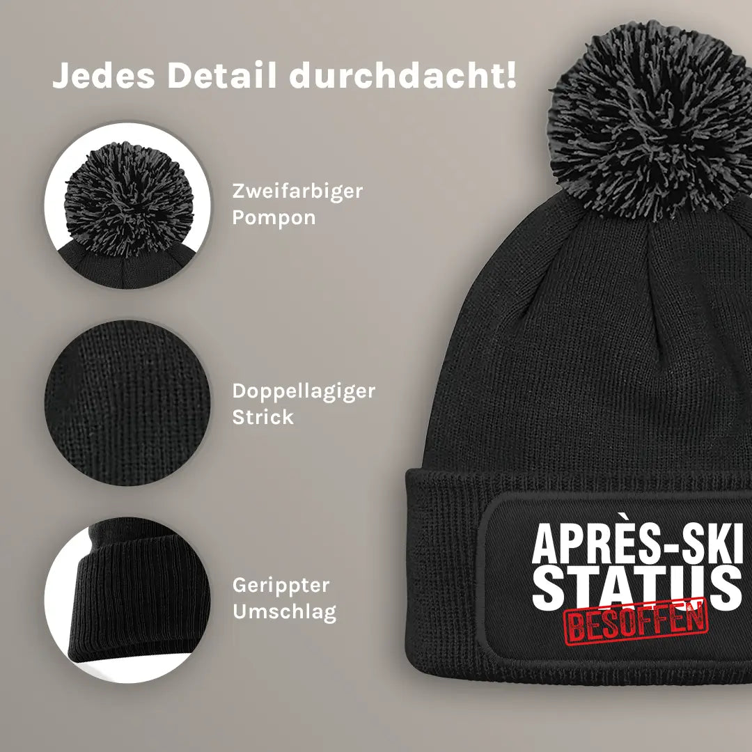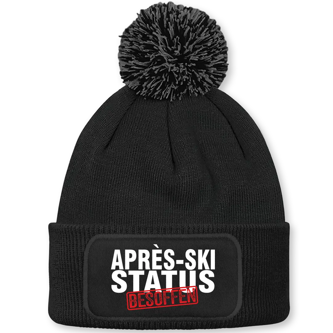 Apres-Ski Status Besoffen - Beanie mit Bommel