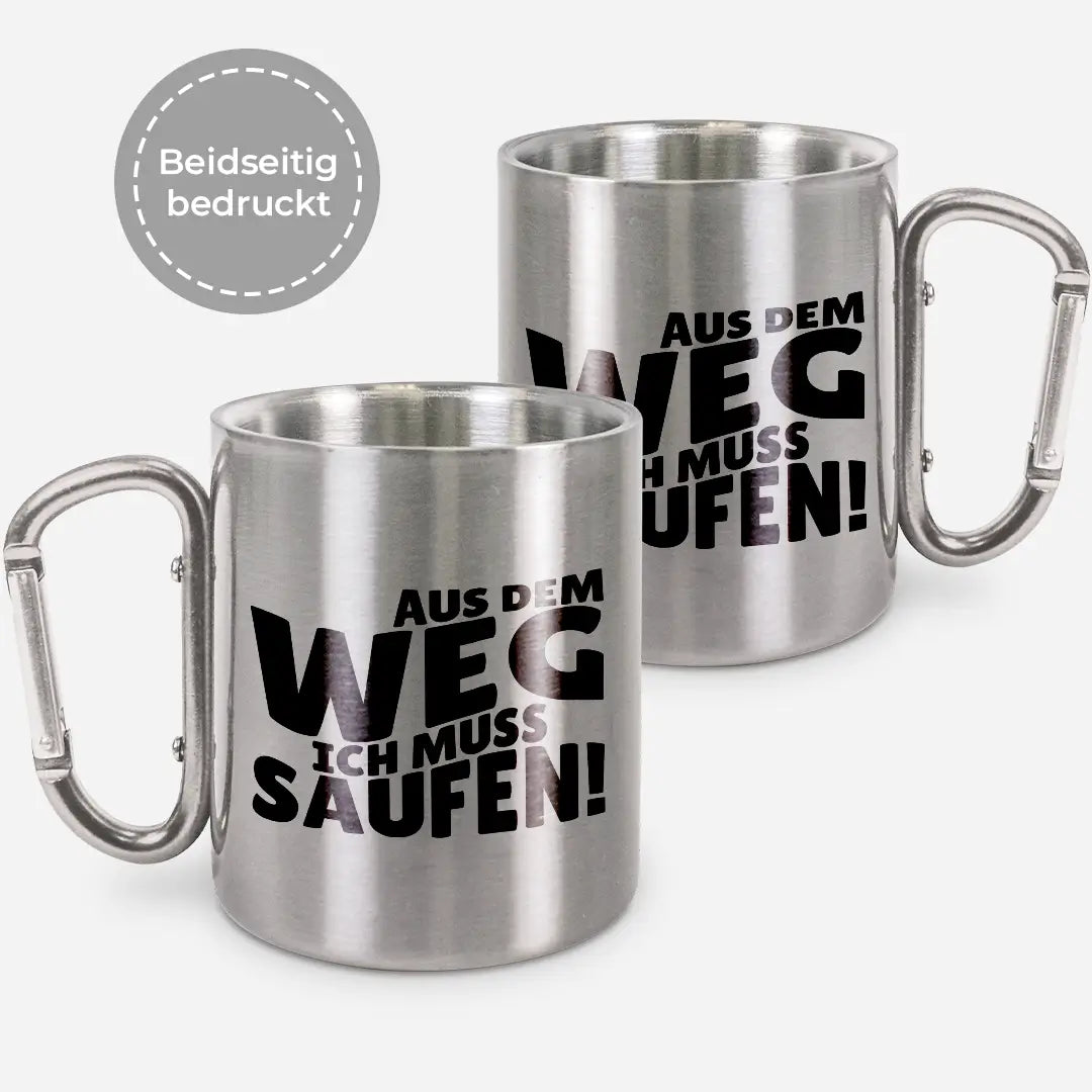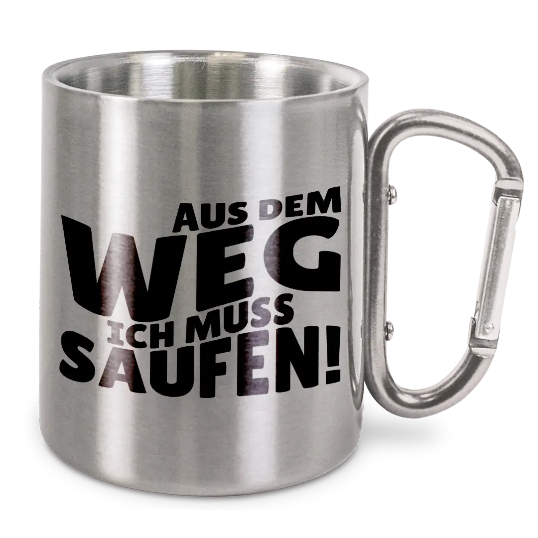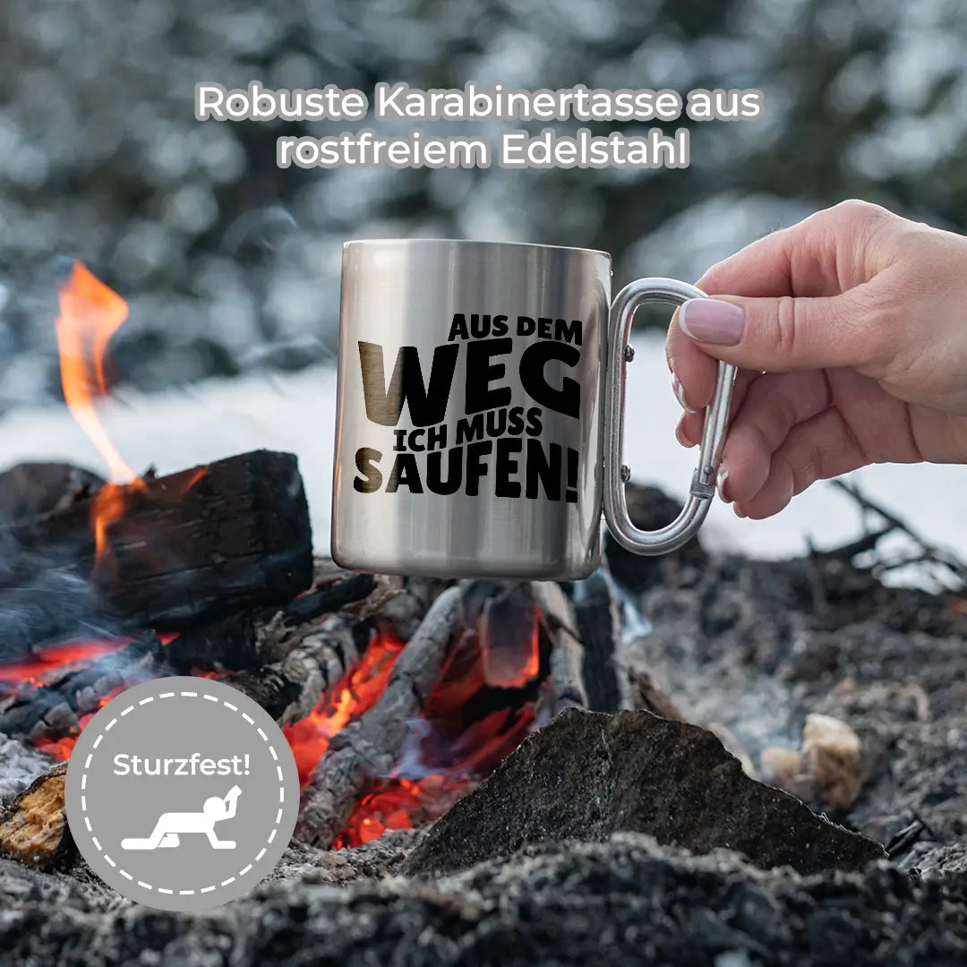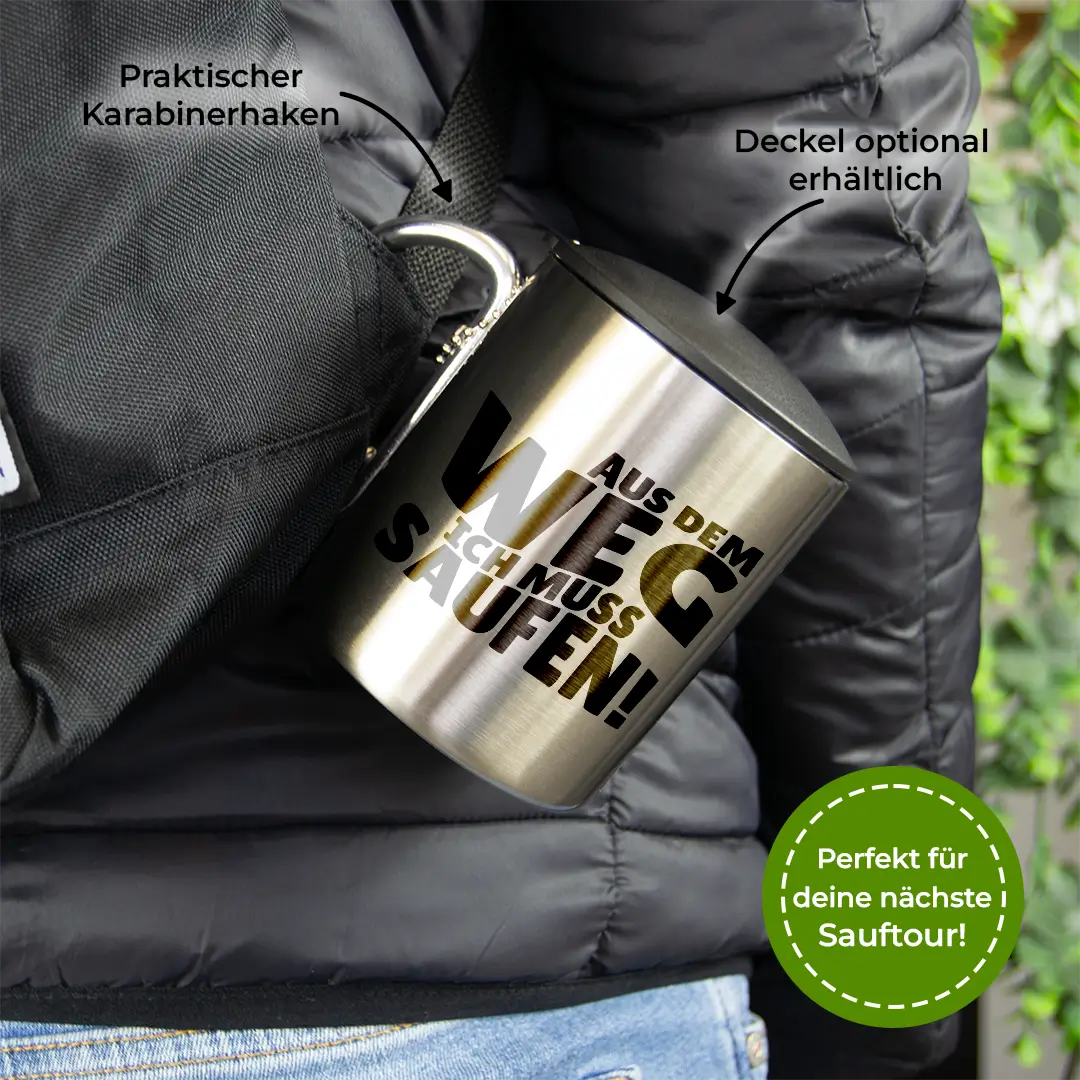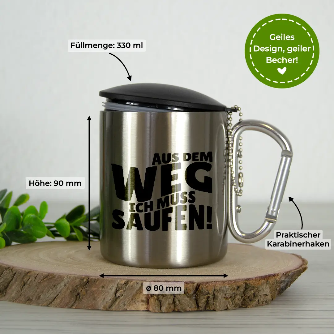 Aus dem Weg ich muss saufen! - Edelstahl-Trinkbecher mit Karabinerhaken