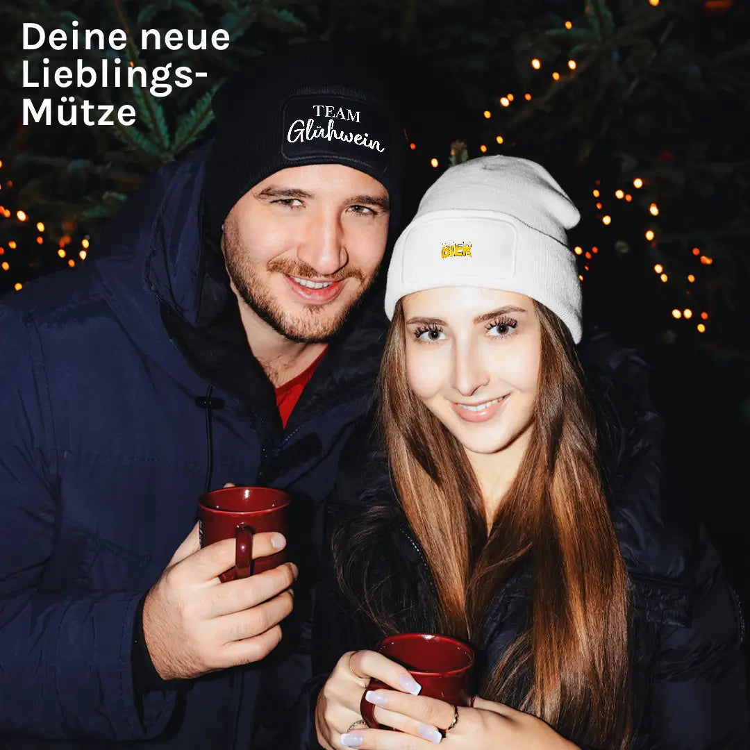 Ein Glühwein in der Hand, Freunde an Deiner Seite und die Beanie auf dem Kopf – so macht Weihnachtsmarkt richtig Spaß! Während Dich der doppellagige Strick zuverlässig warmhält, bringen die frechen Sprüche auf dem Patch garantiert Lacher. Egal ob beim Anstoßen, Schlendern oder Singen – Deine Mütze sorgt für gute Laune, warme Ohren und das perfekte Winterfeeling. Prost auf gemütliche Abende voller Spaß, Glühwein und unvergessliche Momente!
