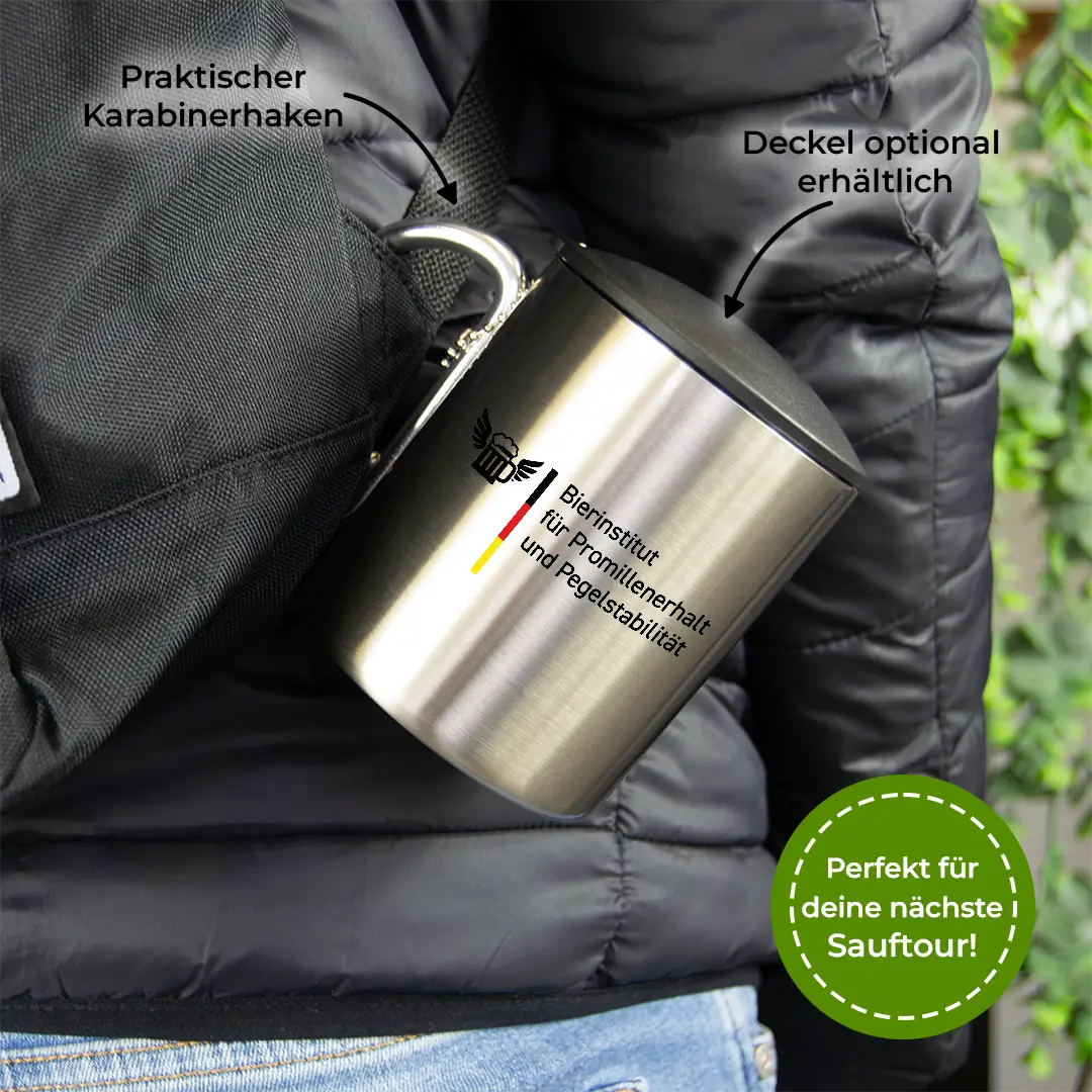 Bierinstitut - Edelstahl-Trinkbecher mit Karabinerhaken