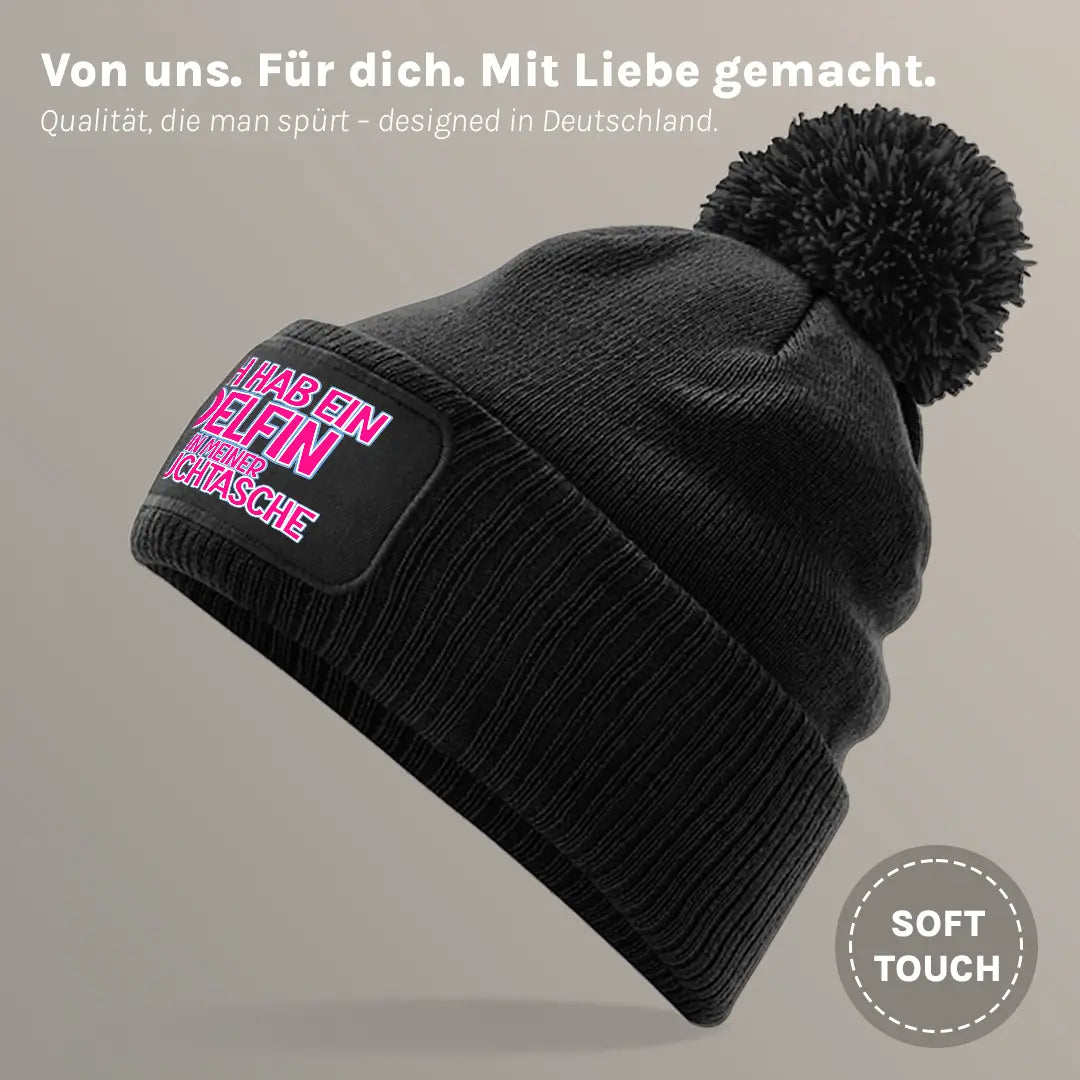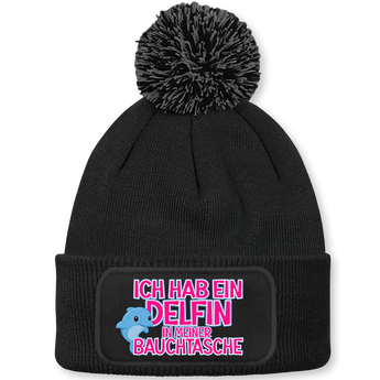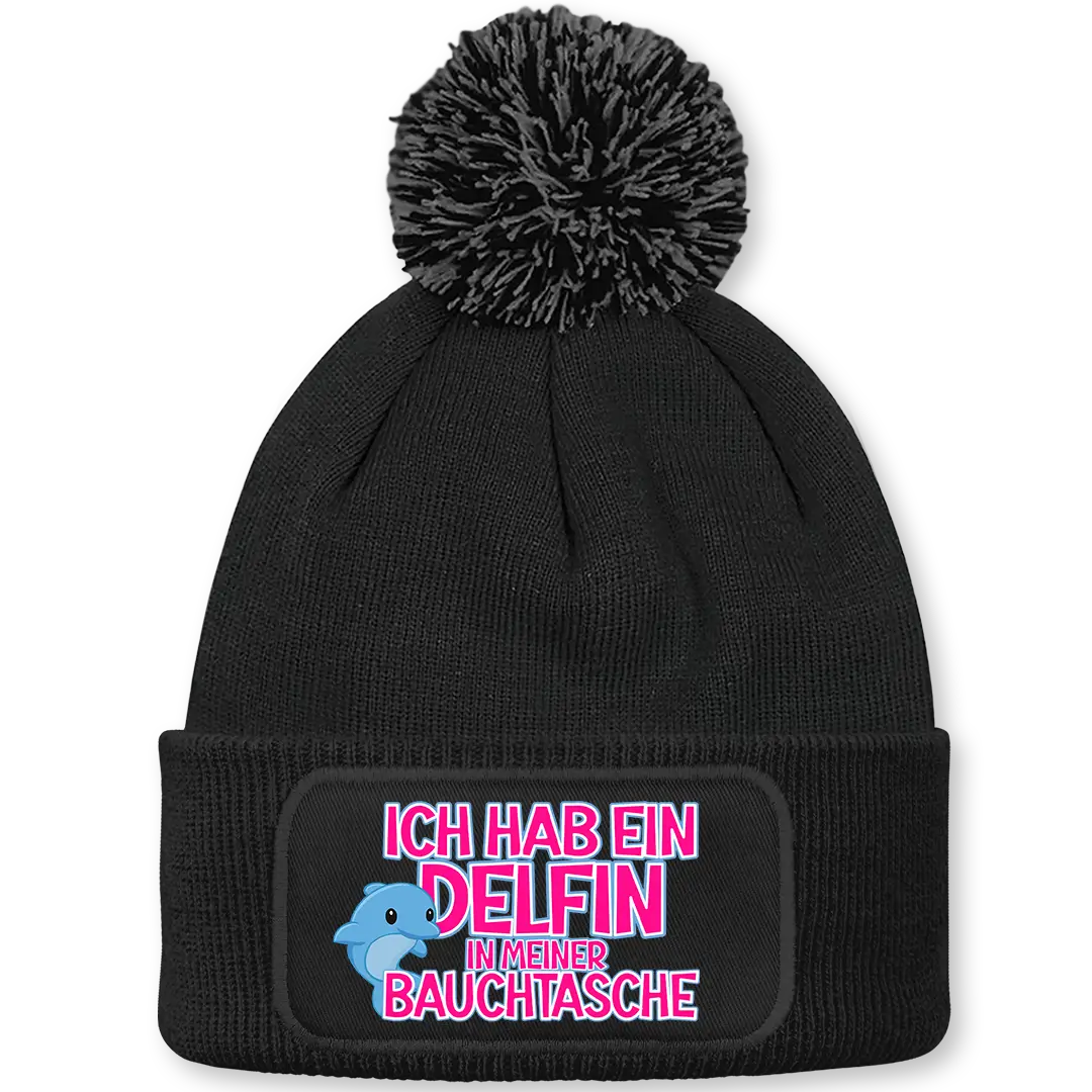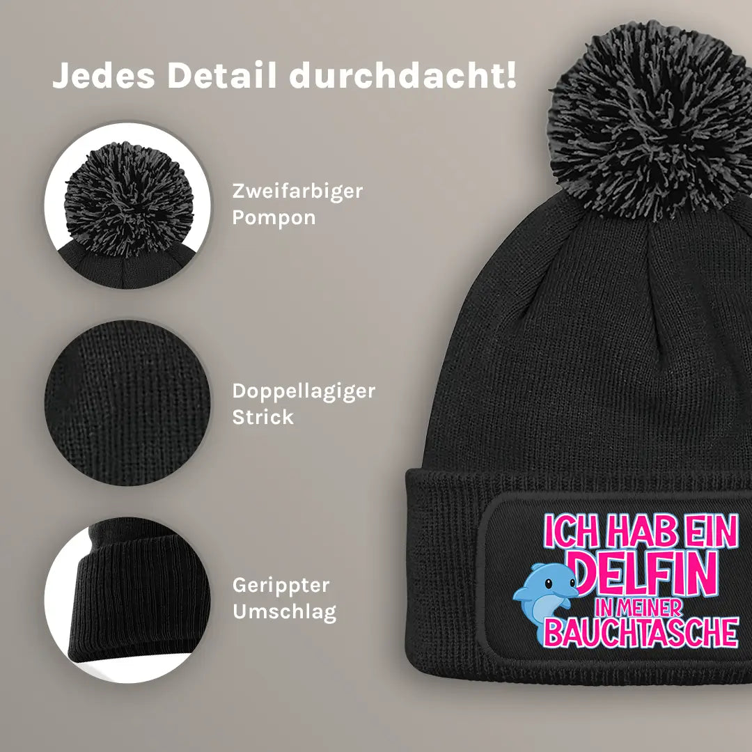 Delfin in meiner Bauchtasche - Beanie mit Bommel