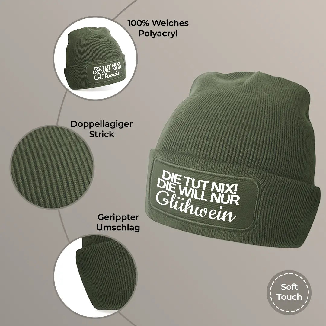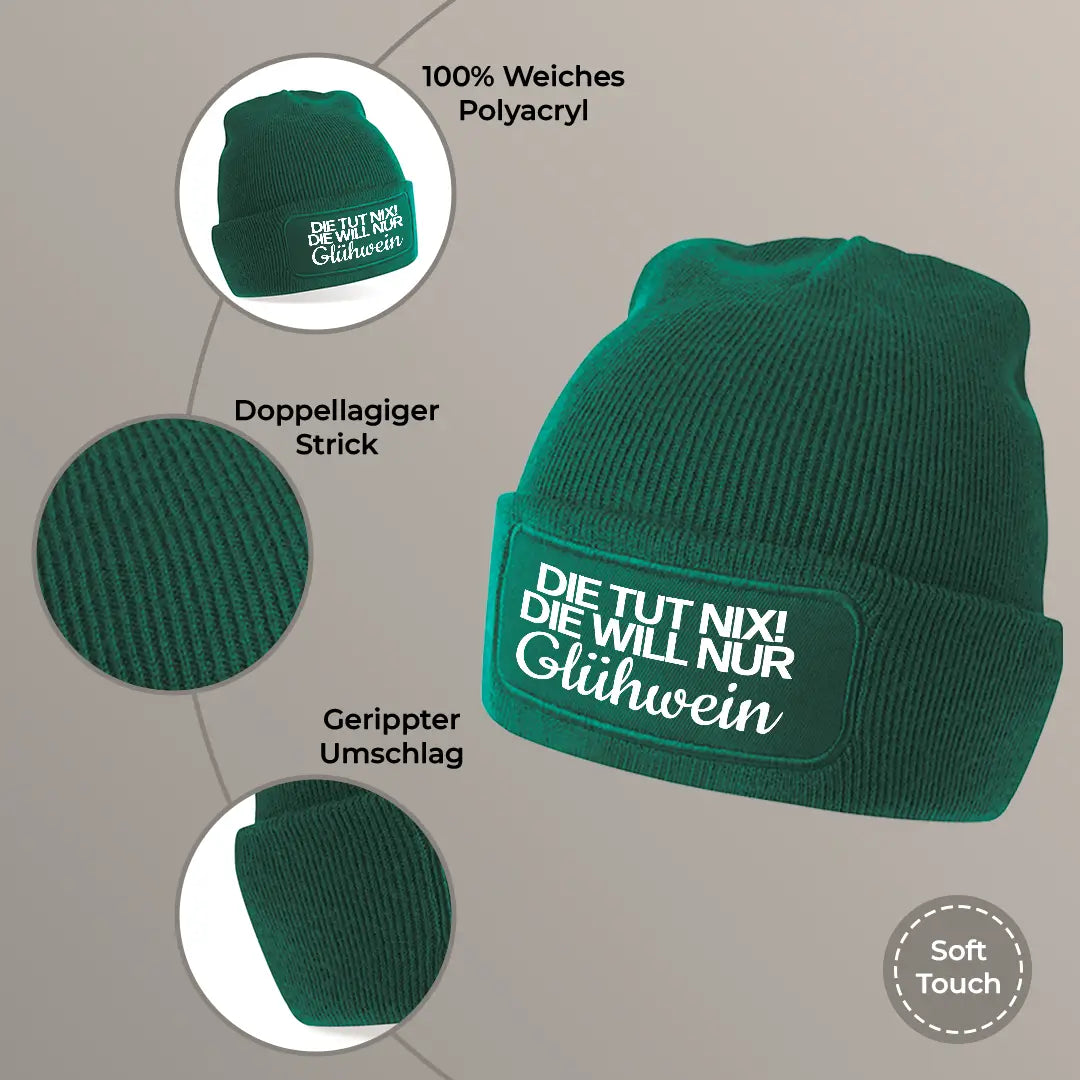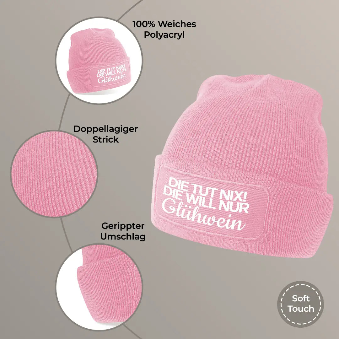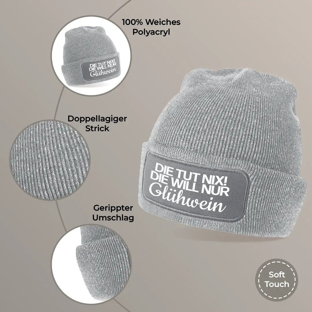 Ein Glühwein in der Hand, Freunde an Deiner Seite und die Beanie auf dem Kopf – so macht Weihnachtsmarkt richtig Spaß! Während Dich der doppellagige Strick zuverlässig warmhält, bringen die frechen Sprüche auf dem Patch garantiert Lacher. Egal ob beim Anstoßen, Schlendern oder Singen – Deine Mütze sorgt für gute Laune, warme Ohren und das perfekte Winterfeeling. Prost auf gemütliche Abende voller Spaß, Glühwein und unvergessliche Momente!