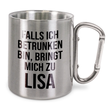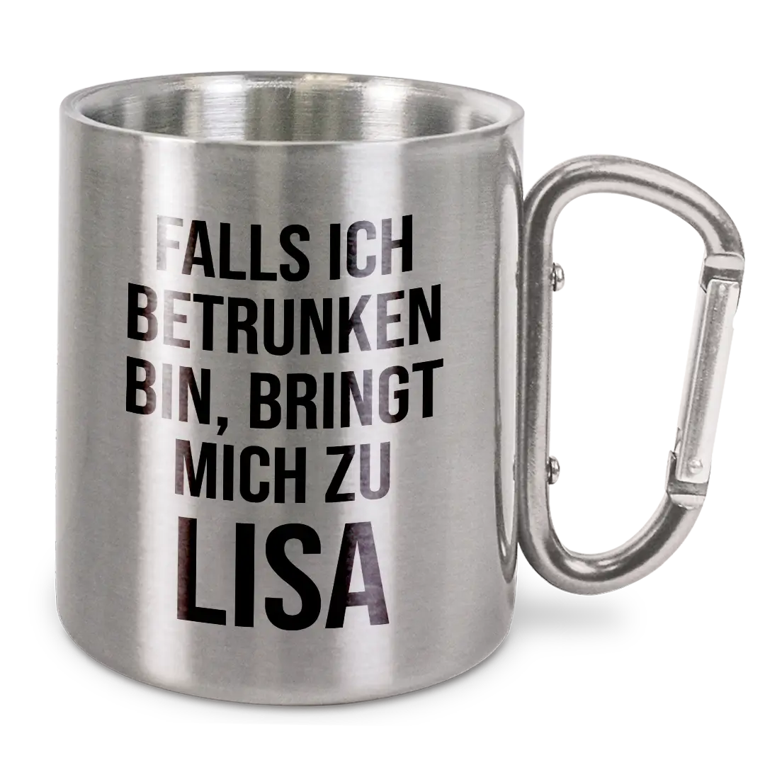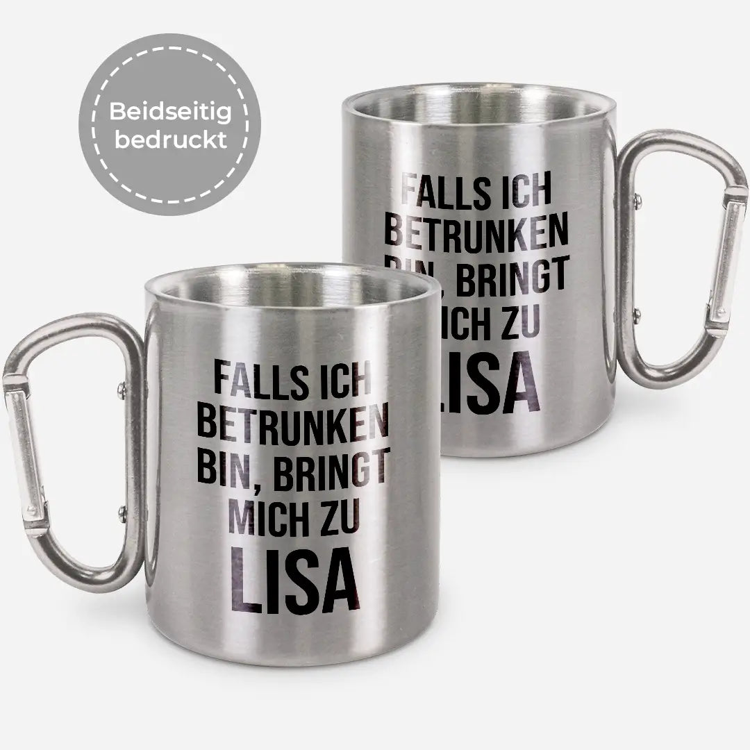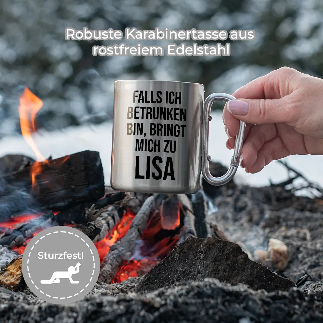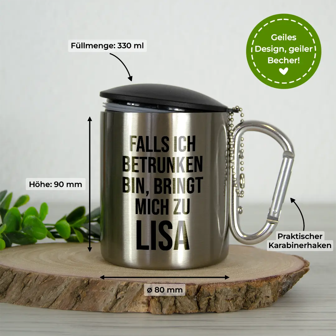 Falls ich betrunken bin - Edelstahl-Trinkbecher mit Karabinerhaken Personalisiert