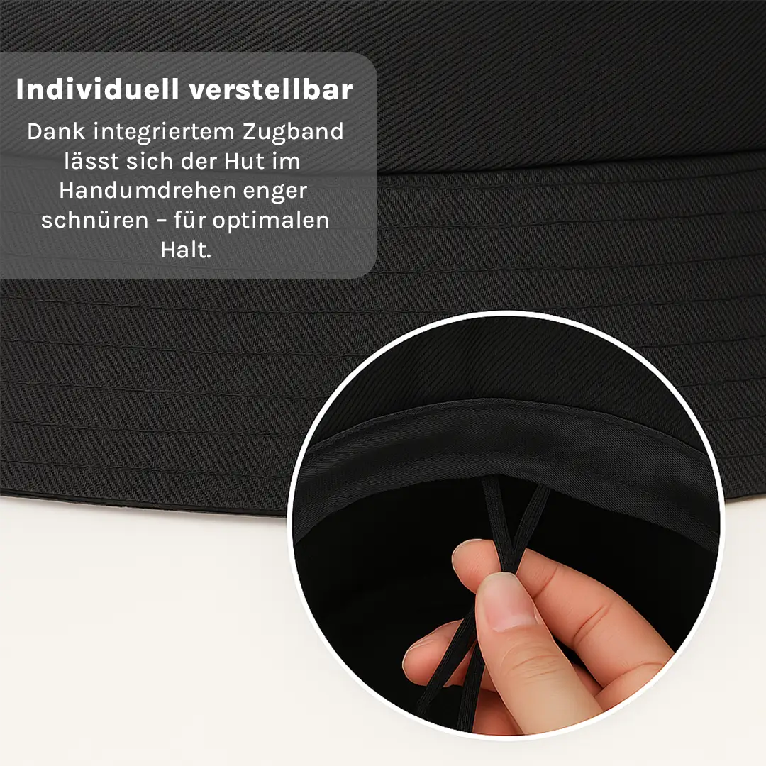 Schutz vor UV-Strahlung: Dieser Hut bietet begrenzten Schutz vor UV-Strahlen. Ergänzende Sonnenschutzmaßnahmen wie Sonnencreme sind notwendig.