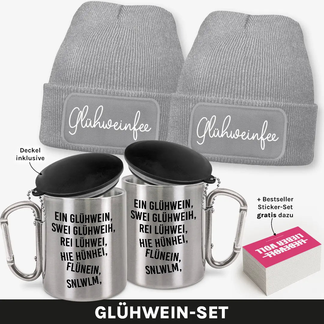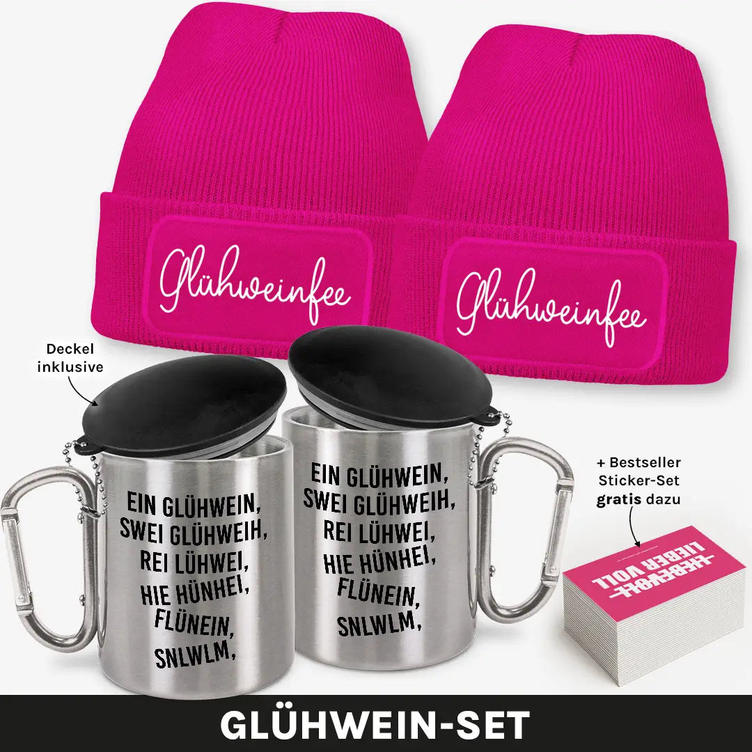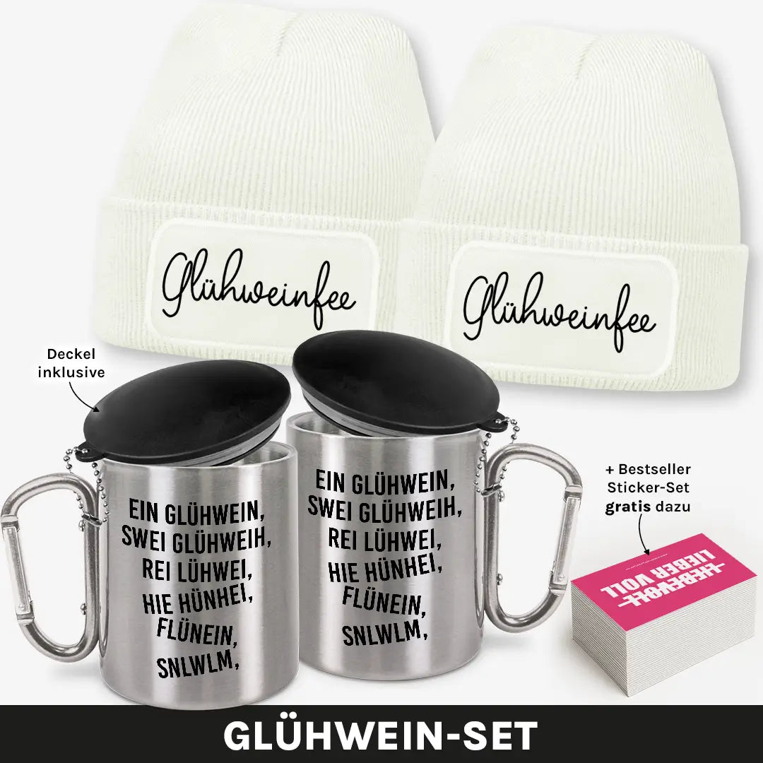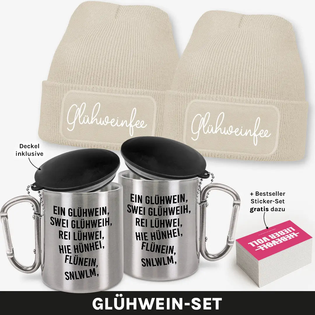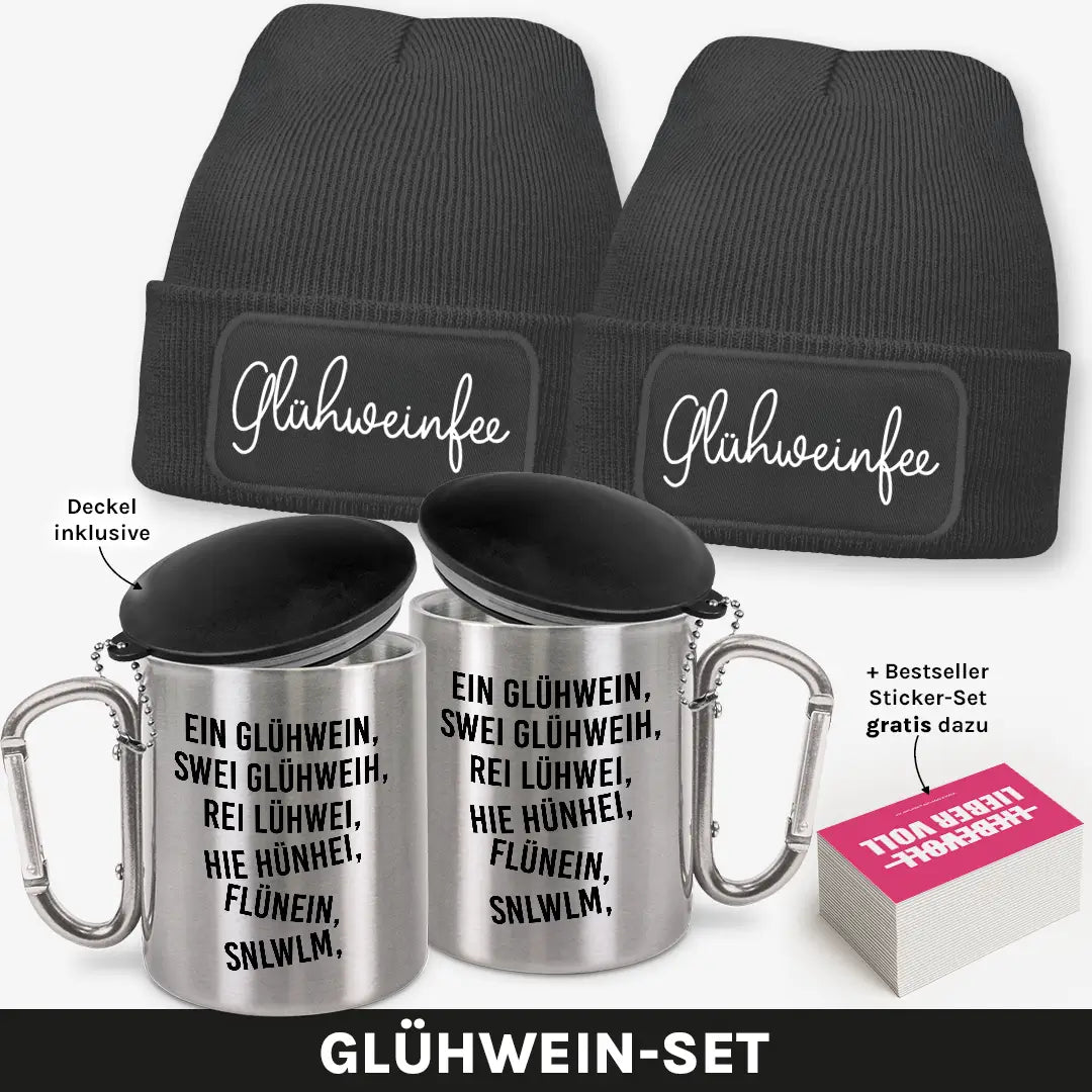 Zwei Beanies, zwei Edelstahlbecher und ein witziges Sticker-Set – das ultimative Winter-Bundle für alle Glühwein-Liebhaberinnen! Ob auf dem Weihnachtsmarkt, beim Après-Ski oder beim gemütlichen Winterabend mit Freunden: Mit diesem Set zeigst du, dass du nicht nur den Überblick, sondern auch den besten Glühwein in der Hand hast. 😋❄️