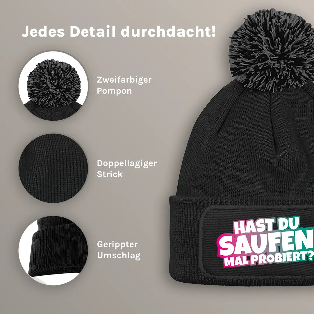 Hast du saufen mal probiert? - Beanie mit Bommel