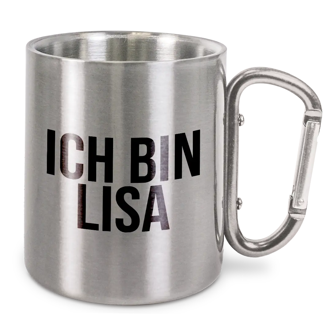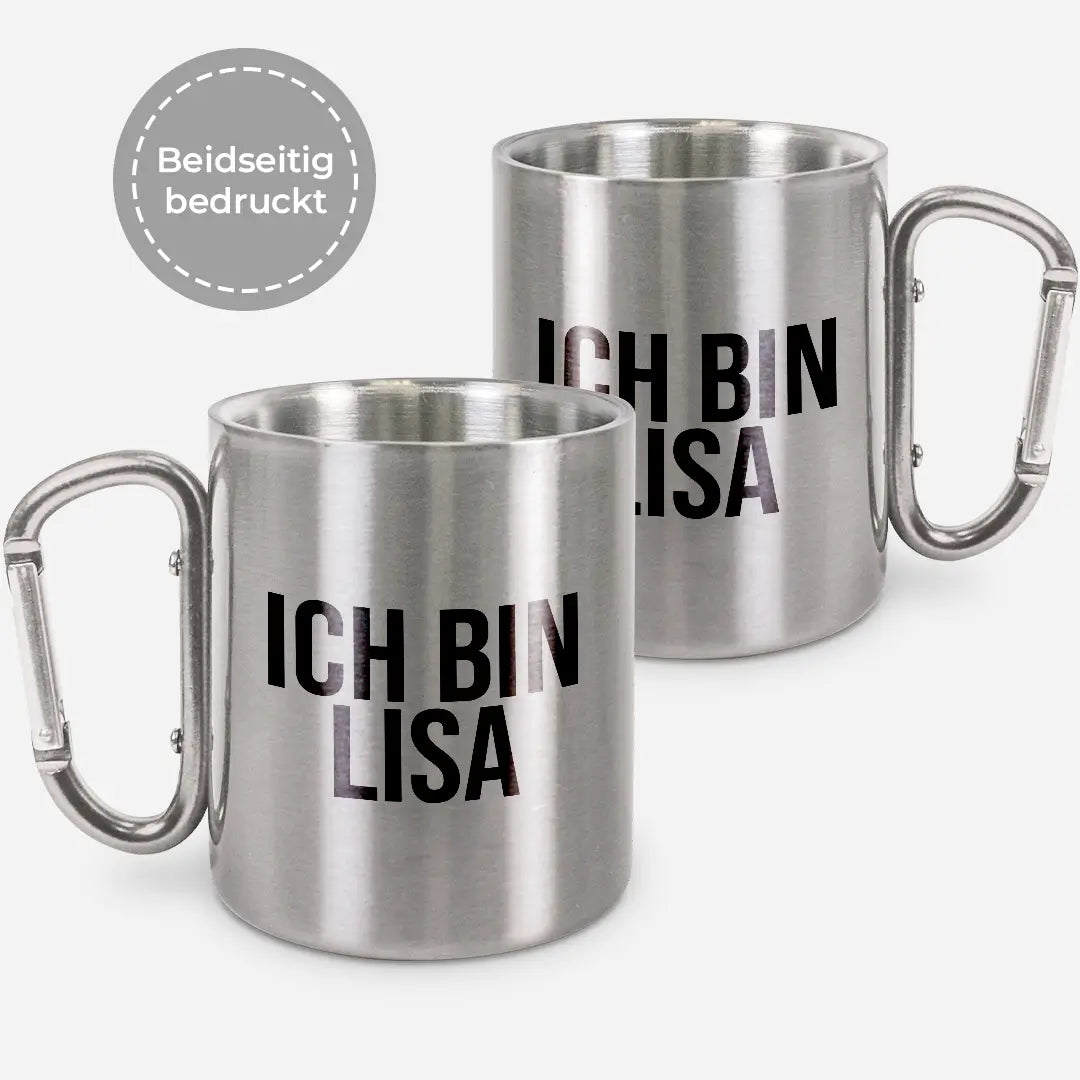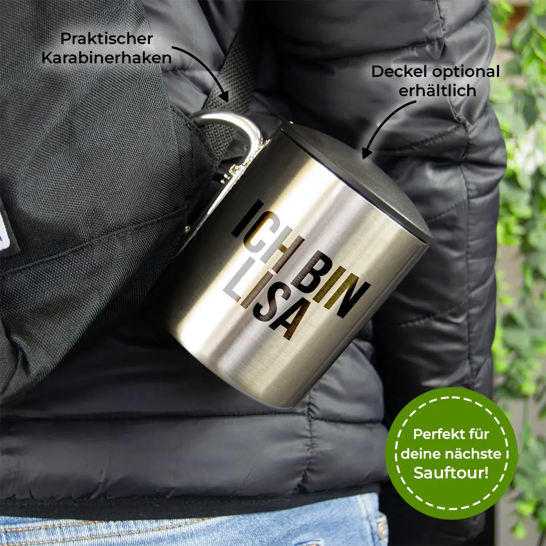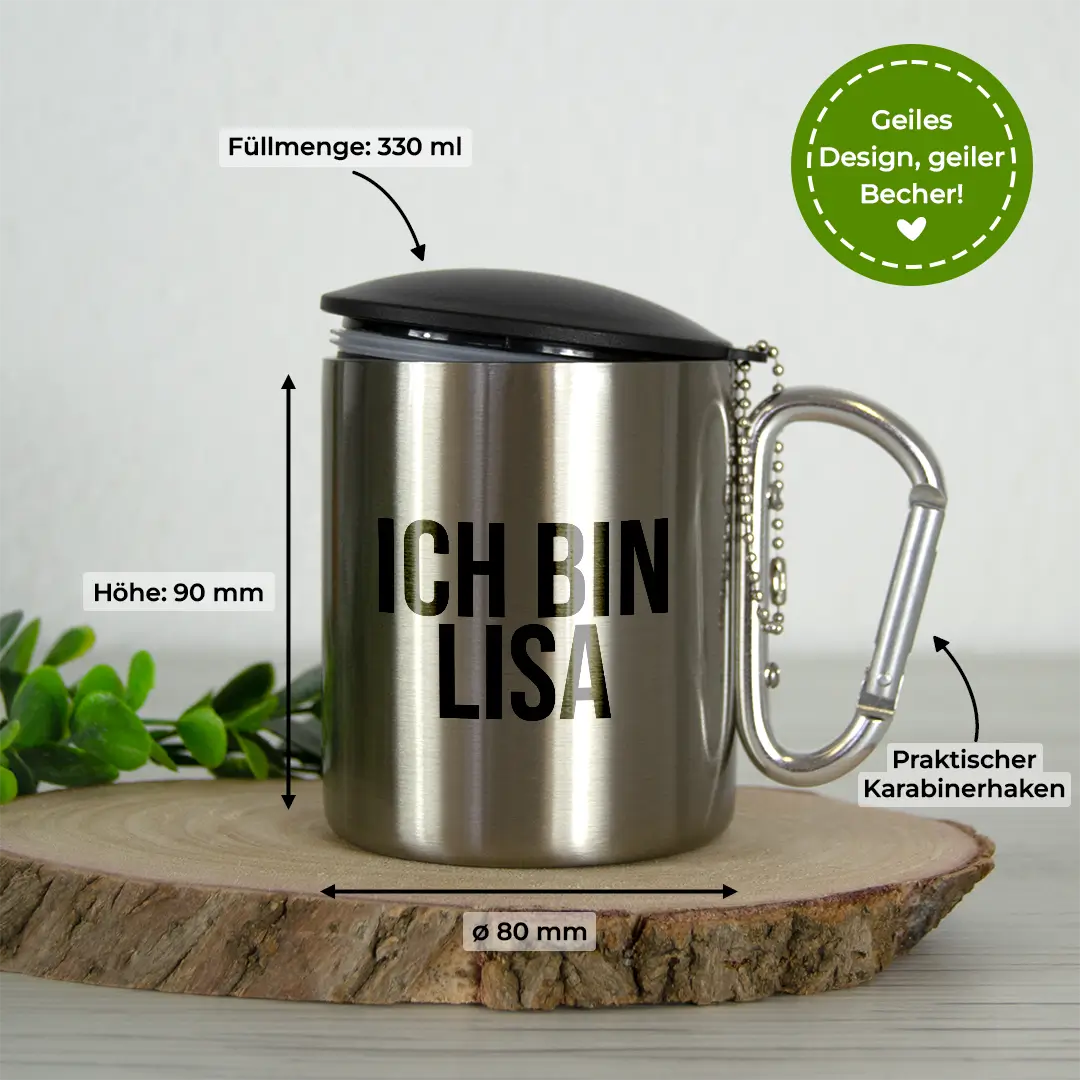 Ich bin... - Edelstahl-Trinkbecher mit Karabinerhaken Personalisiert