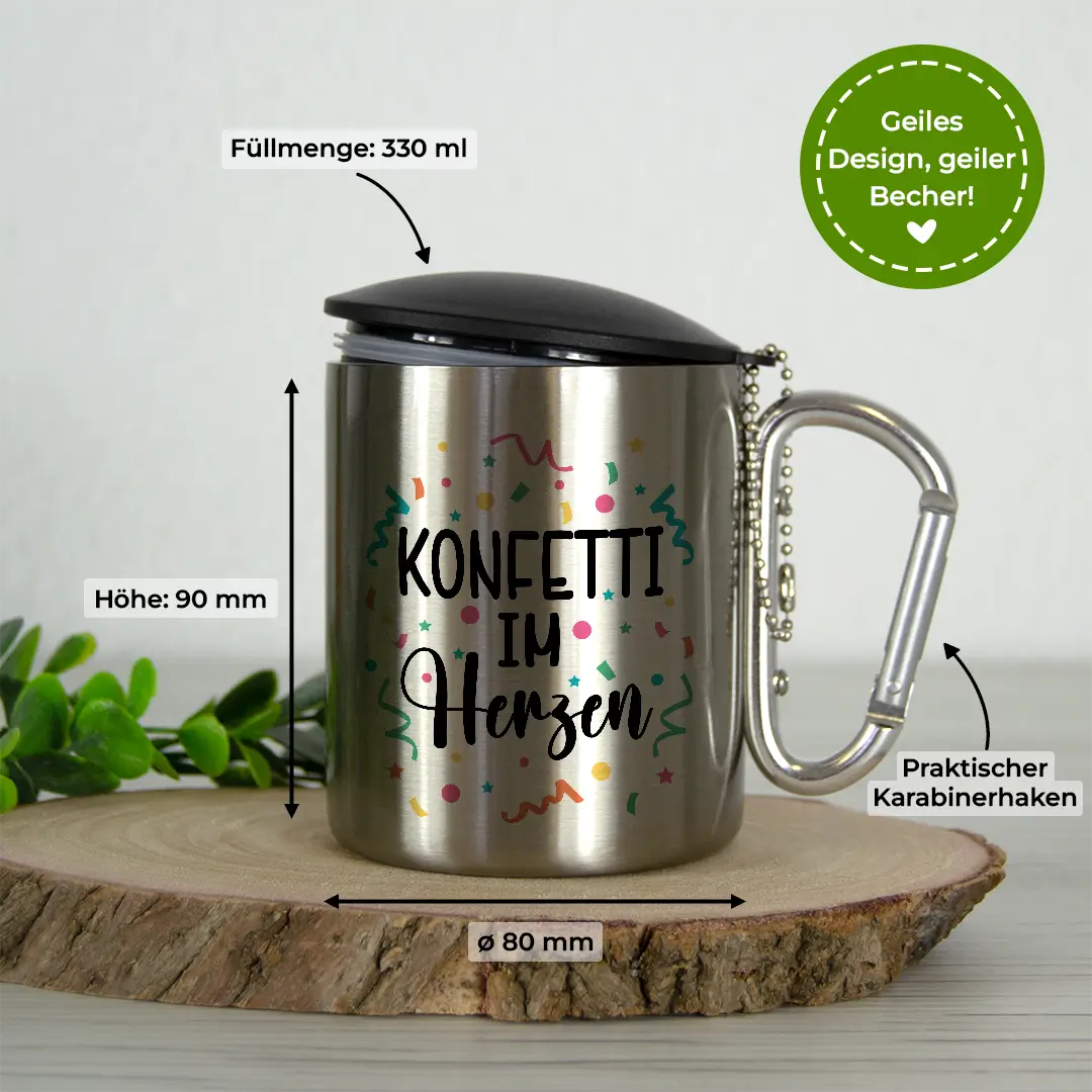 Robust, stylisch und absolut praktisch – unser doppelwandiger Edelstahl-Trinkbecher mit Deckel hält dein Getränk stundenlang heiß oder eiskalt! Ob Glühwein auf dem Weihnachtsmarkt, Kaffee beim Wandern oder Kaltgetränke beim Camping – du bist immer bestens ausgestattet. Dank des stabilen Karabinerhakens lässt sich der Becher einfach an Rucksack, Gürtel oder Tasche befestigen. Leicht, bruchfest und wiederverwendbar – perfekt für jedes Abenteuer!