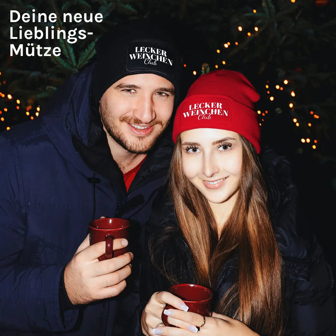 Ein Glühwein in der Hand, Freunde an Deiner Seite und die Beanie auf dem Kopf – so macht Weihnachtsmarkt richtig Spaß! Während Dich der doppellagige Strick zuverlässig warmhält, bringen die frechen Sprüche auf dem Patch garantiert Lacher. Egal ob beim Anstoßen, Schlendern oder Singen – Deine Mütze sorgt für gute Laune, warme Ohren und das perfekte Winterfeeling. Prost auf gemütliche Abende voller Spaß, Glühwein und unvergessliche Momente!