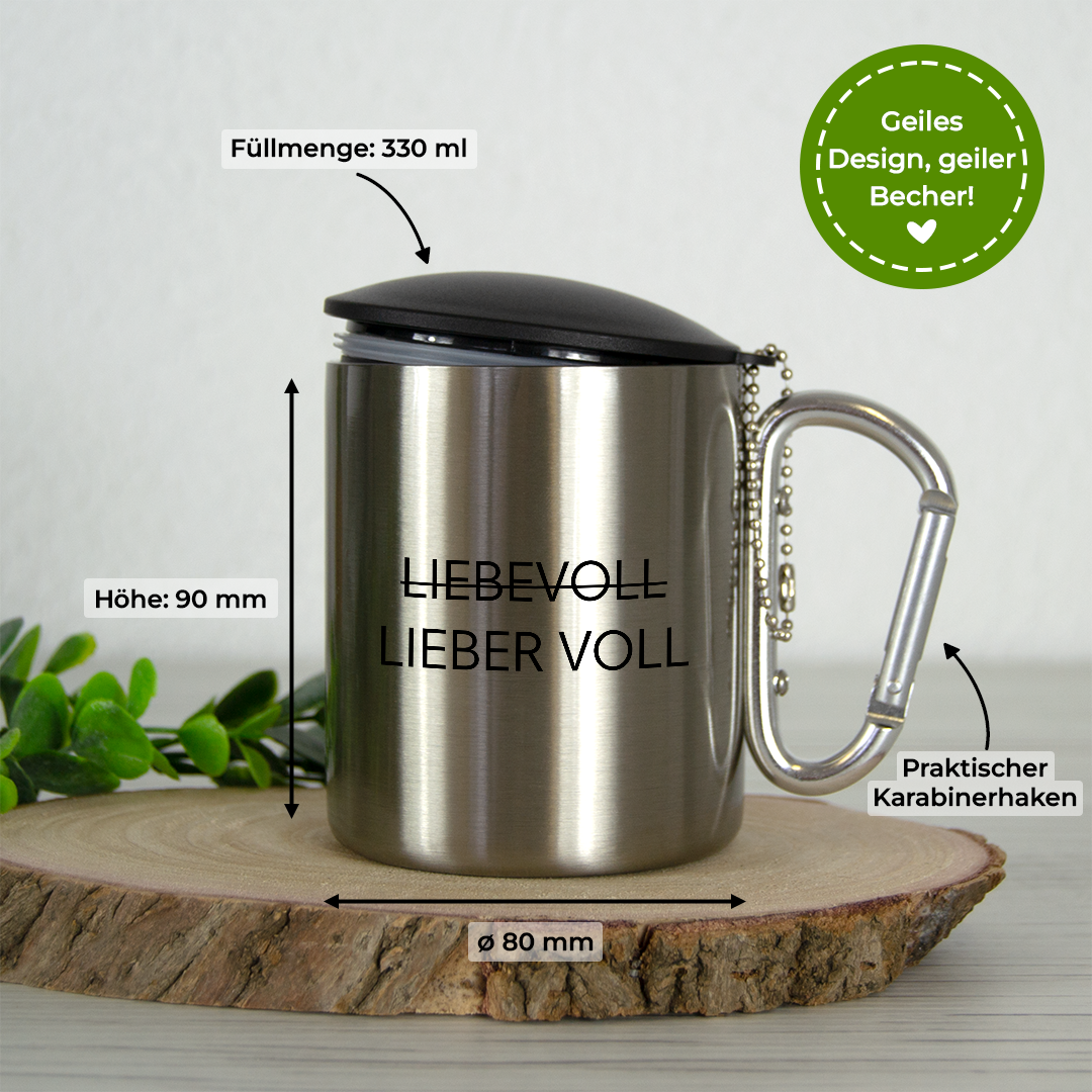 ✅ 2 Edelstahlbecher mit Karabinerhaken – robust, leicht & doppelwandig isoliert