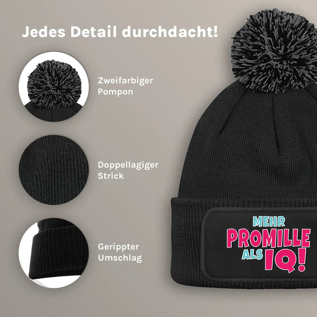 Mehr Promille als IQ - Beanie mit Bommel