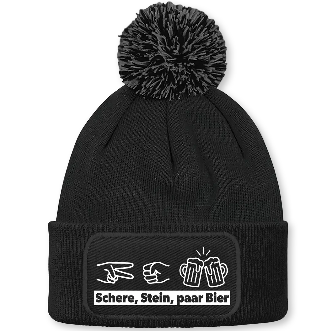 Schere, Stein, paar Bier - Beanie mit Bommel