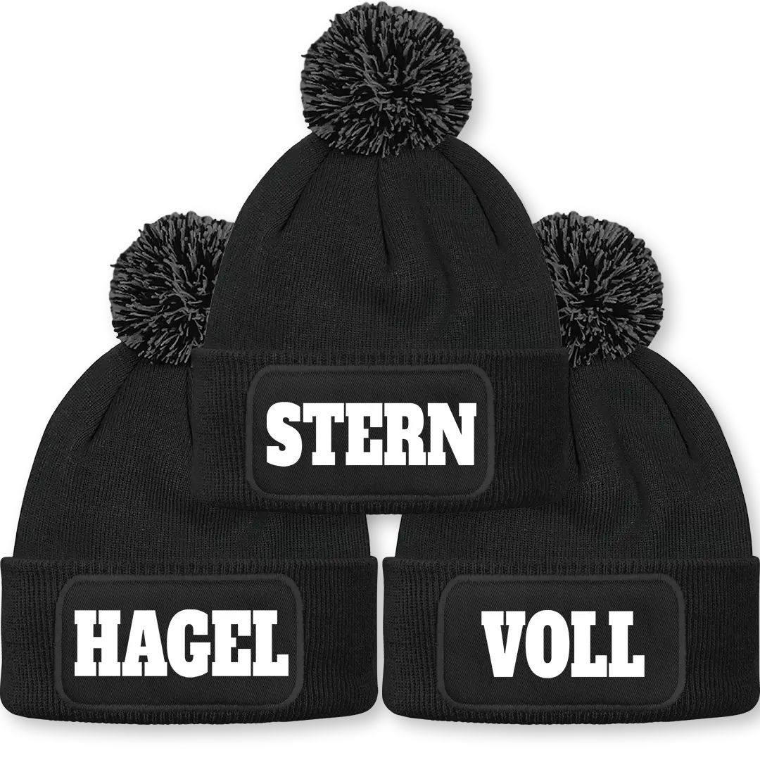 Stern Hagel Voll - 3er Set Beanie mit Bommel
