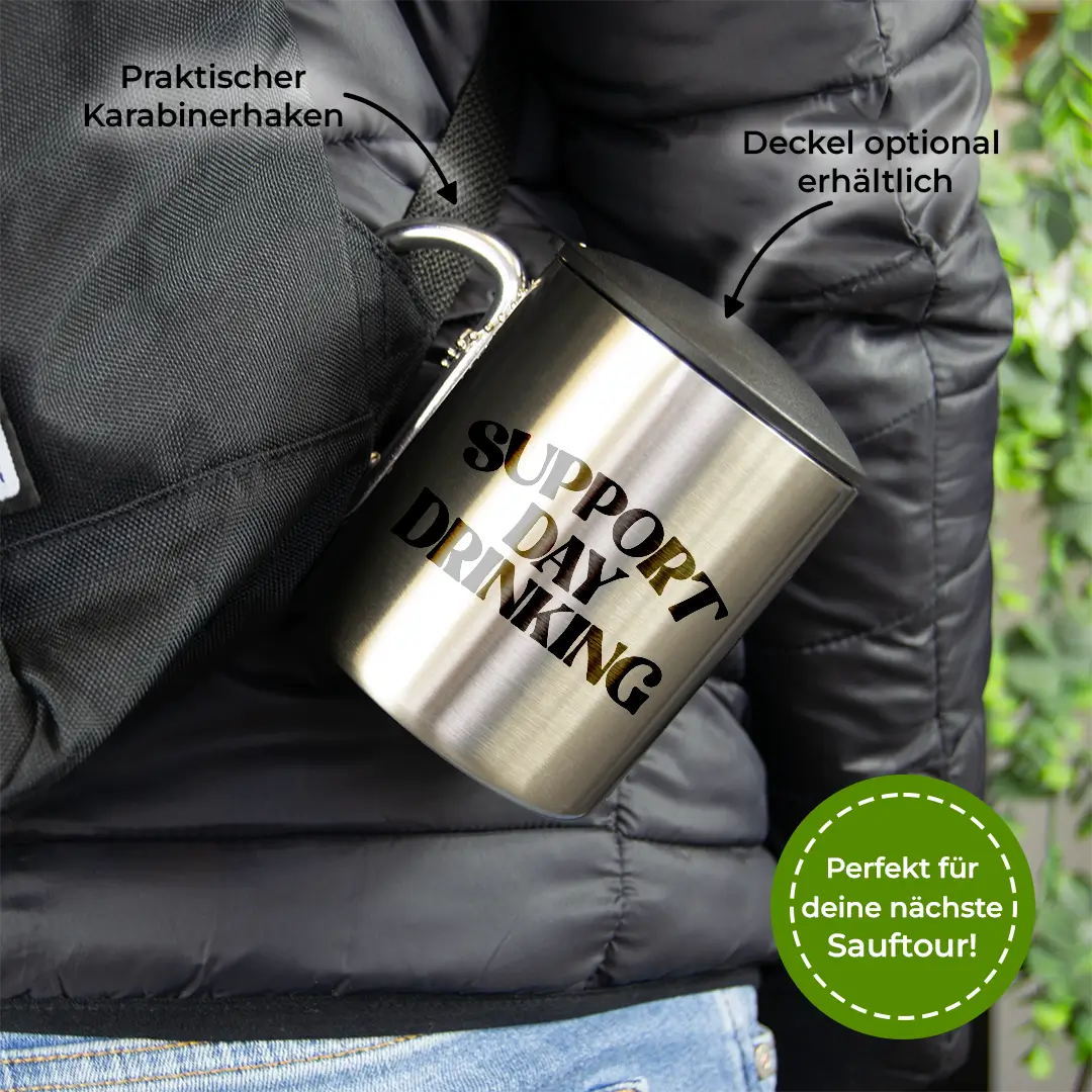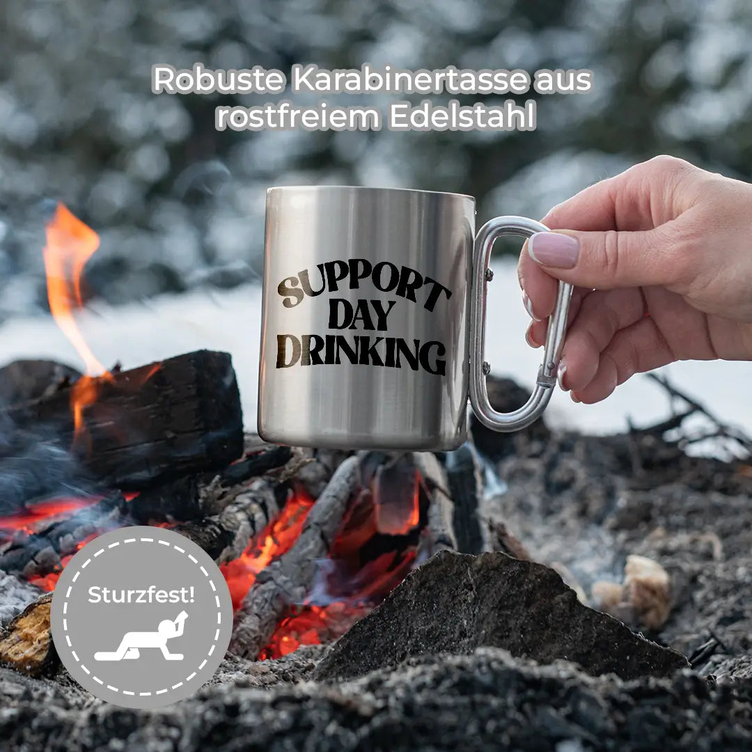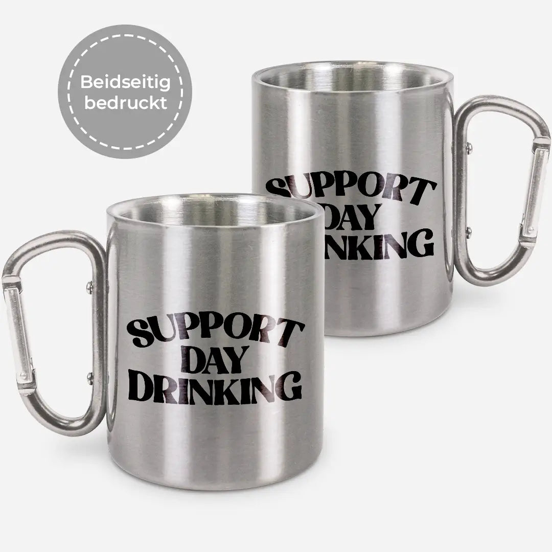 Support Daydrinking - Edelstahl-Trinkbecher mit Karabinerhaken