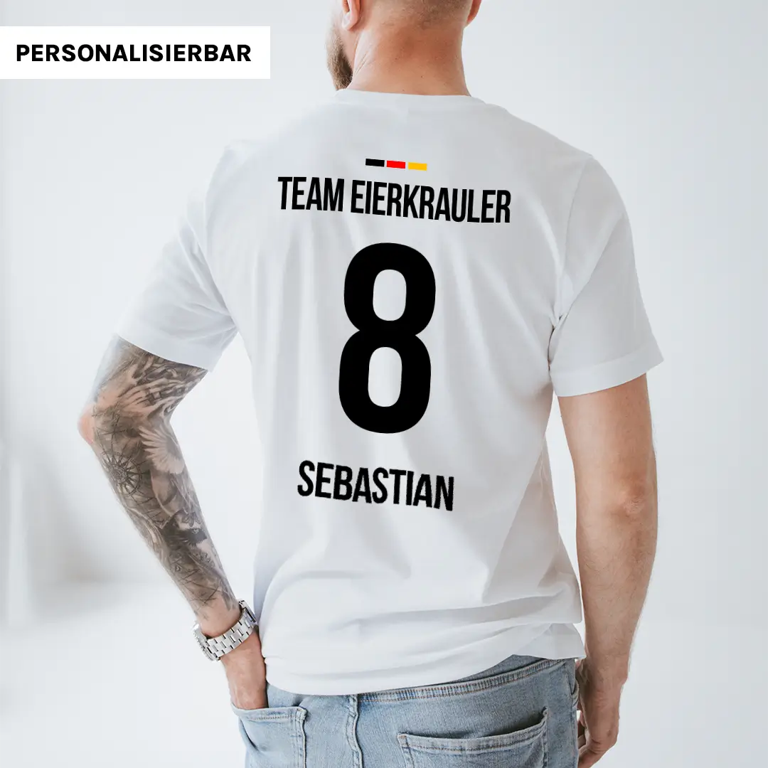 Fühl dich wie ein Teil des Teams mit dem personalisierten Deutschland Fußball-T-Shirt im Trikot-Design, deinem perfekten Begleiter für die Fußball-Europameisterschaft!