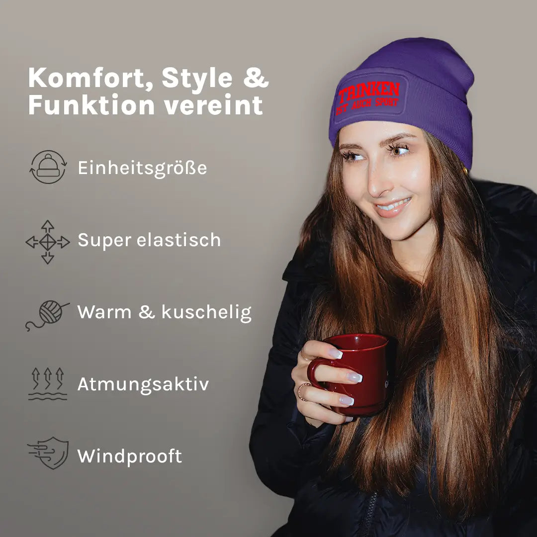 Nach einem Tag auf der Piste gibt es nichts Besseres als eine gemütliche Apres-Ski-Party! Mit unserer Beanie bist Du nicht nur perfekt vor der Kälte geschützt, sondern setzt auch modisch ein Statement. Ob auf der Hütte oder im Tal, die frechen Sprüche auf dem Patch sorgen für Lacher und machen Deine Beanie zum idealen Begleiter für jedes Apres-Ski-Abenteuer. Schick, warm und immer in bester Laune – so rockst Du den Winter!