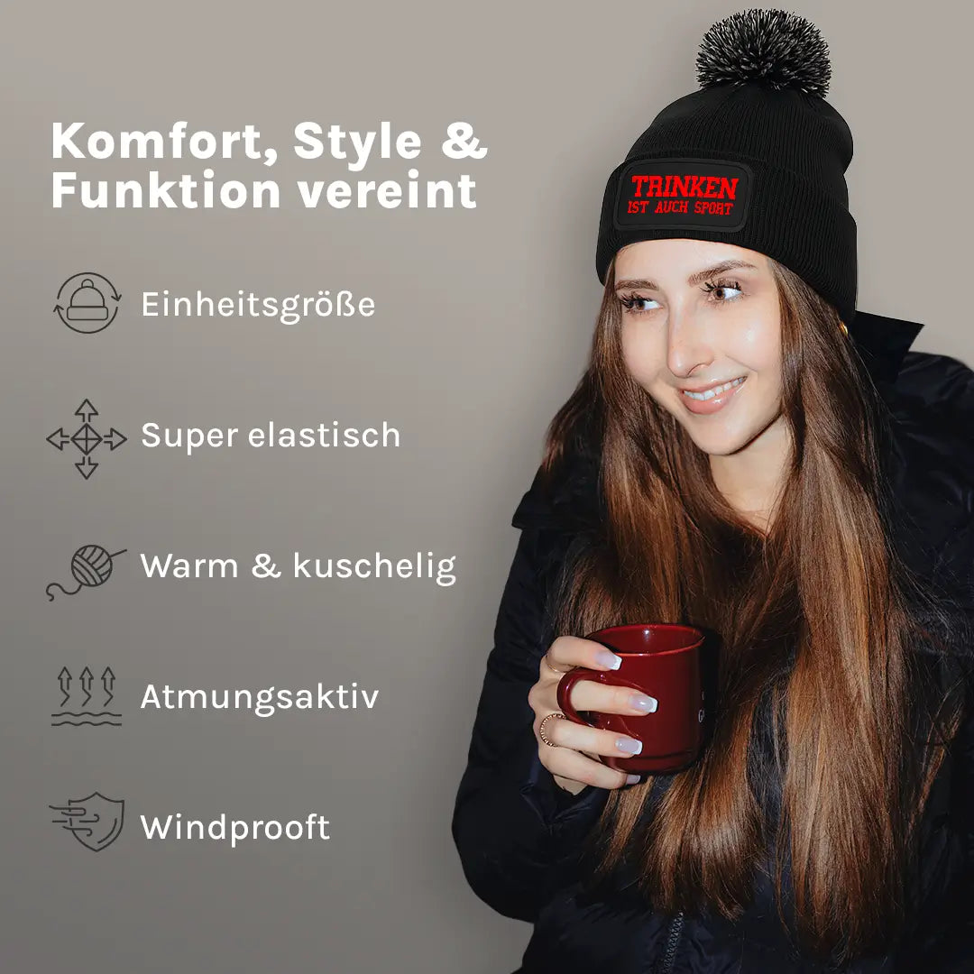 Nach dem Skitag bist Du mit unserer Beanie bestens ausgestattet: kuschelig warm, winddicht und mit frechen Sprüchen, die in jeder Hütte für Lacher sorgen. Dein Must-have für jede Après-Ski-Party im Winter.
