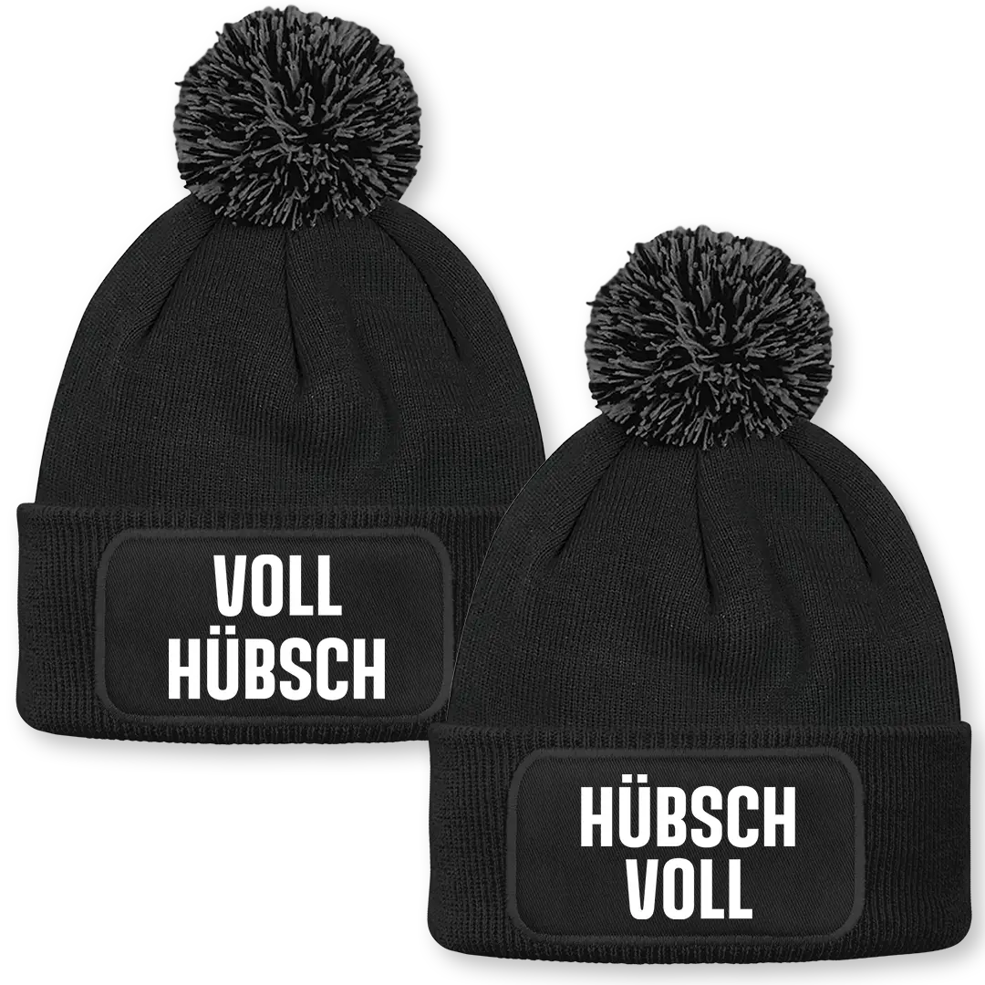 Voll hübsch / Hübsch voll - 2er Set Beanie mit Bommel